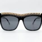 Stella McCartney SC40009I è un occhiale realizzato interamente in Italia in bio-acetato con dettaglio catena oro.